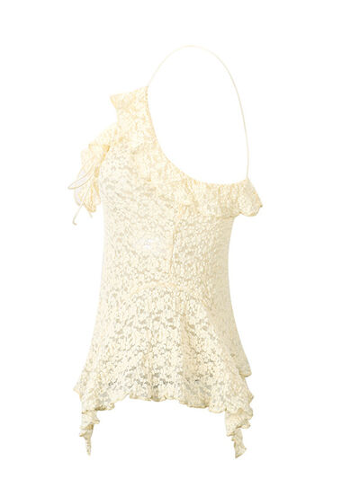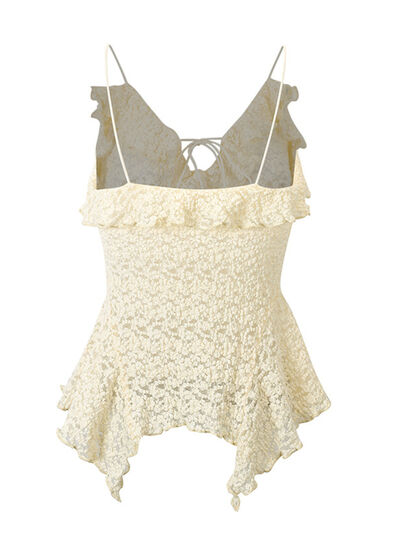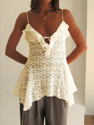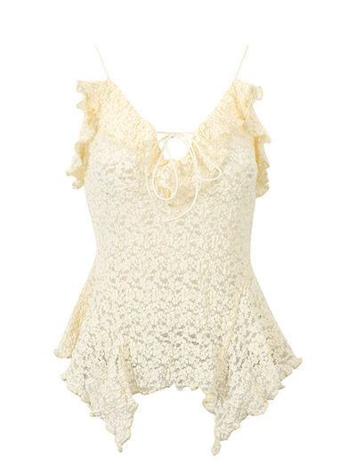 Lace Ruffle Trim Tie-Front Cami