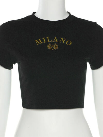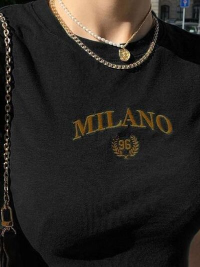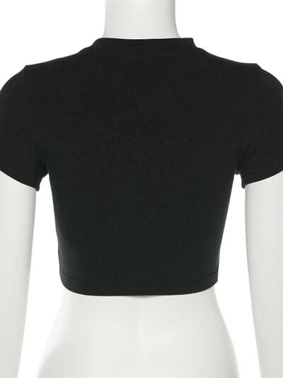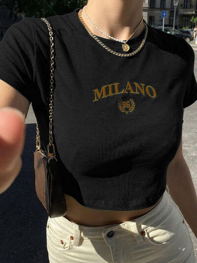 Letter Embroidered Cropped T-Shirt