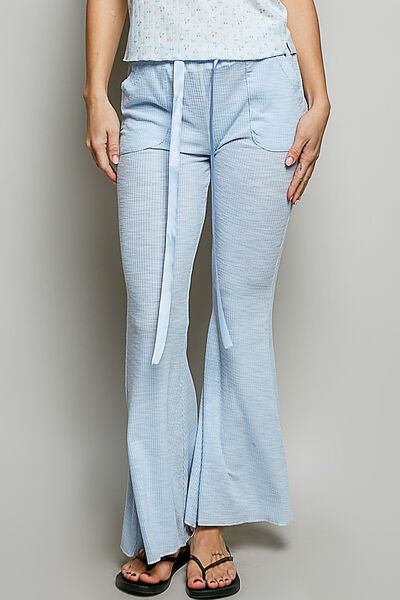 POL Drawstring Textured Ribbed Knit Pants