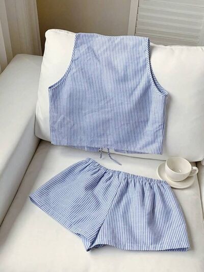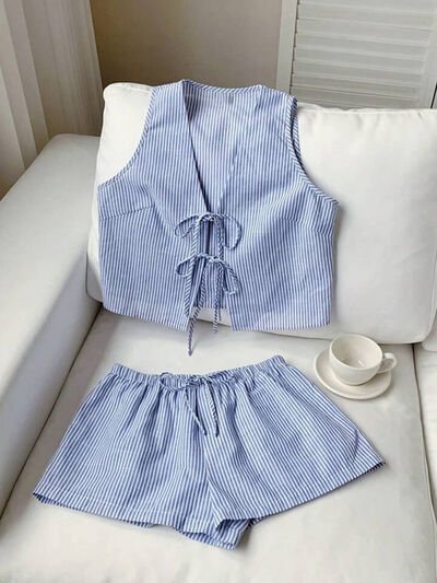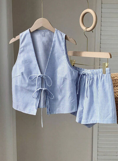 Striped Tie-Front Vest and Shorts Set