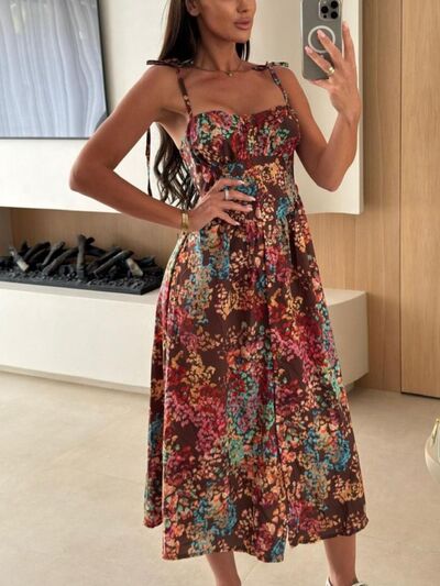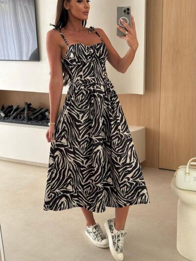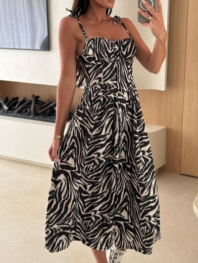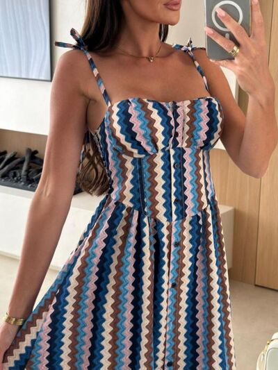 Striped Tie-Shoulder Midi Dress