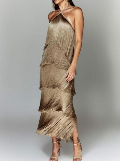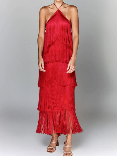Fringe Halter Neck Maxi Dress