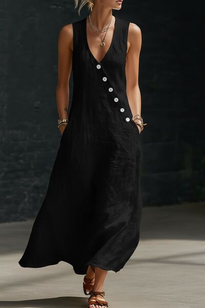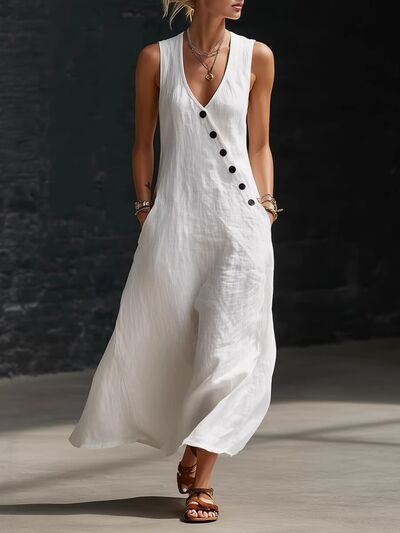 Sleeveless Button-Down Midi Dress