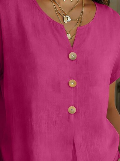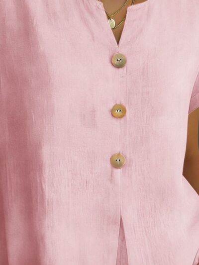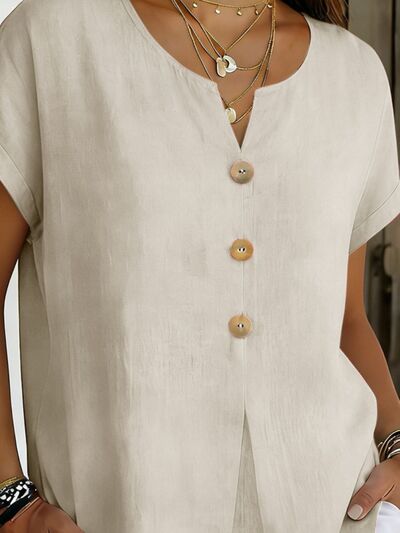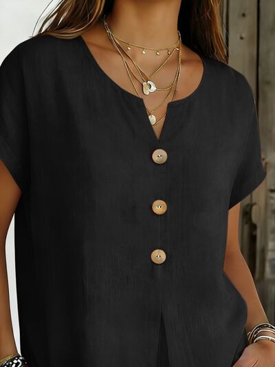 Decor Button Short Sleeve Blouse