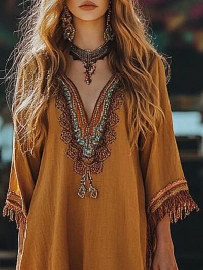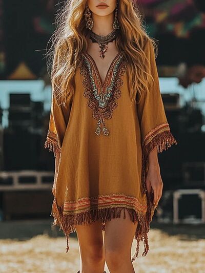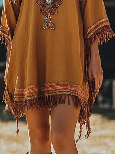 Fringe Hem 3/4 Sleeve Mini Dress