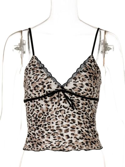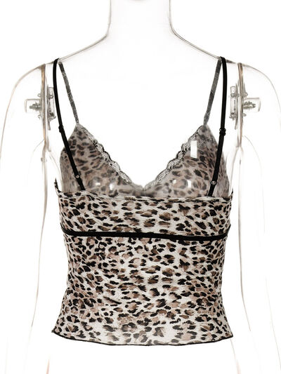 Leopard Print Lace Trim Cami