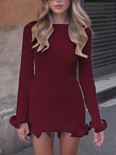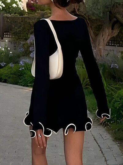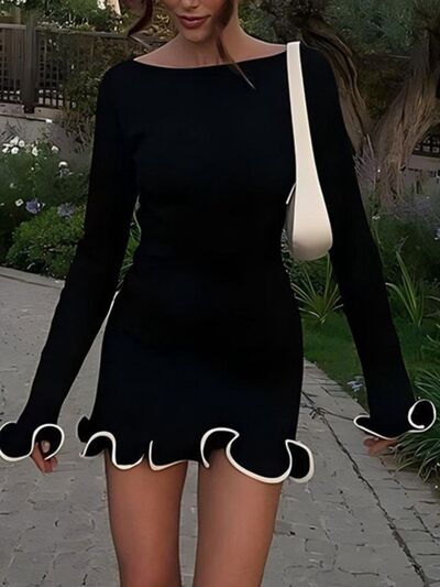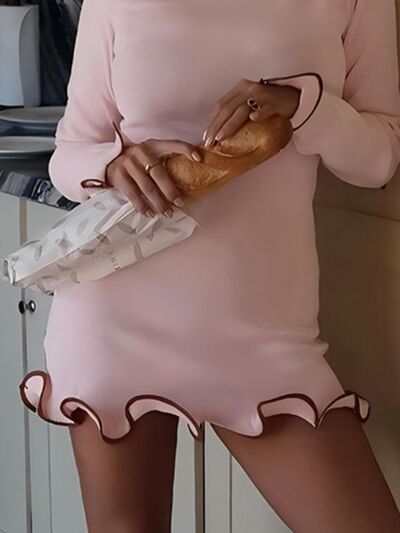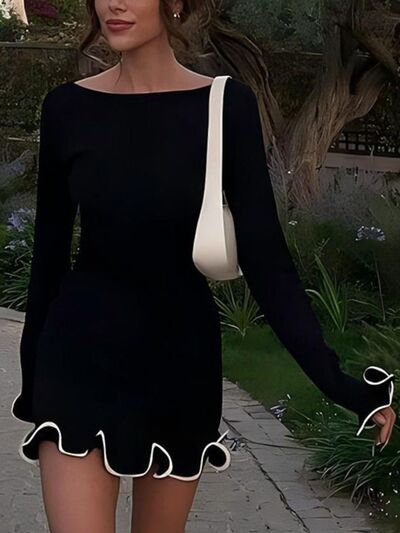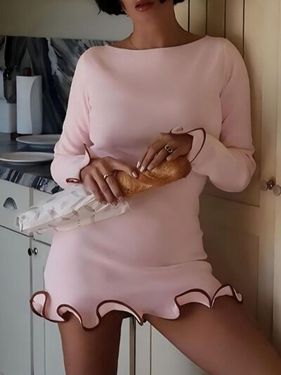 Ruffle Hem Long Sleeve Mini Dress