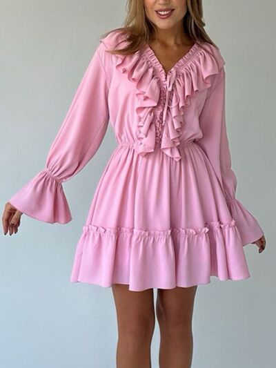 Ruffled Flounce Sleeve Mini Dress