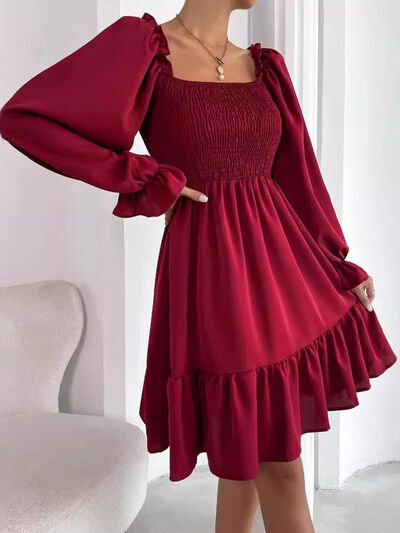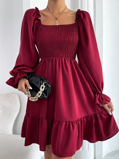 Smocked Flounce Sleeve Mini Dress