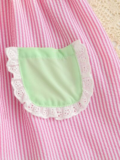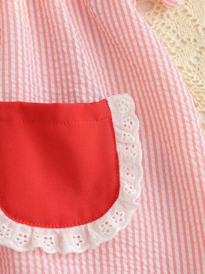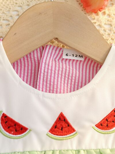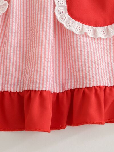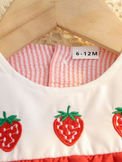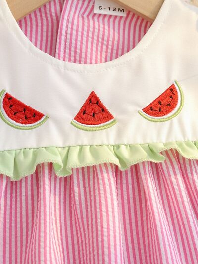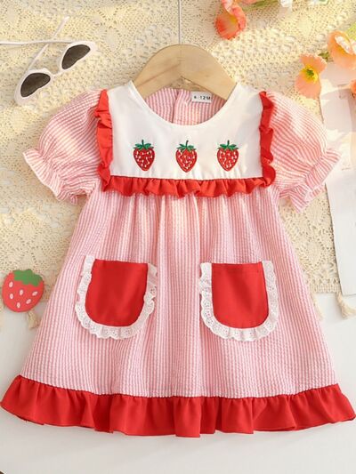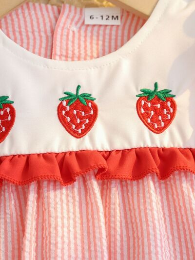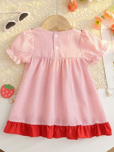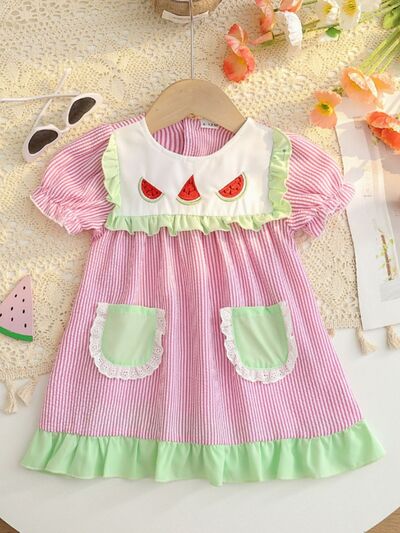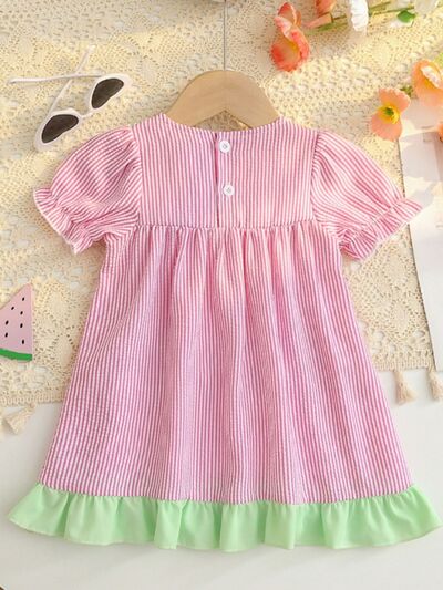 Children's Fruit Embroidered Striped Short Sleeve Dress