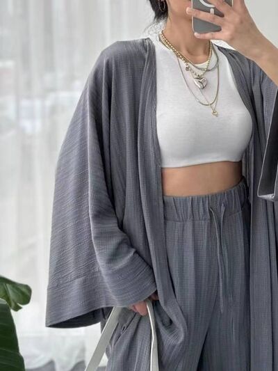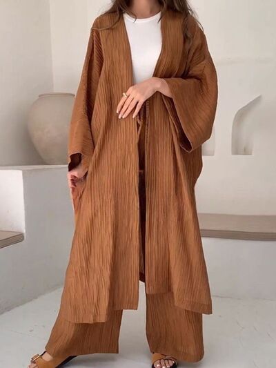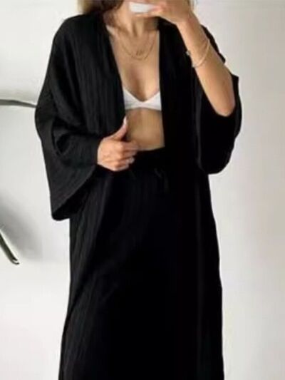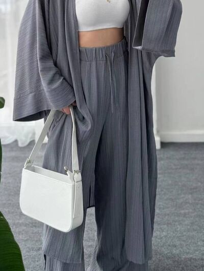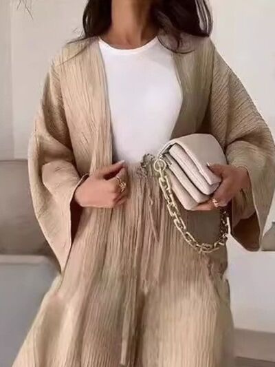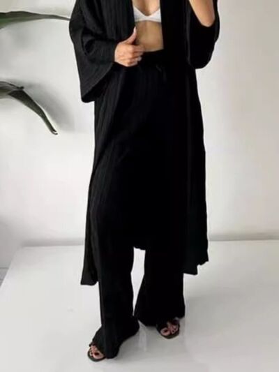 Full Size Textured Knit Cardigan and Pants Set Plus Size