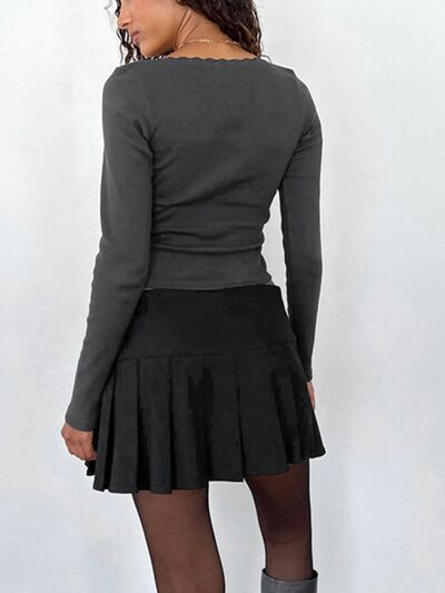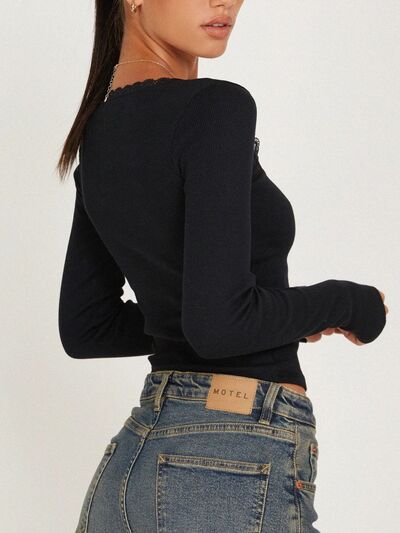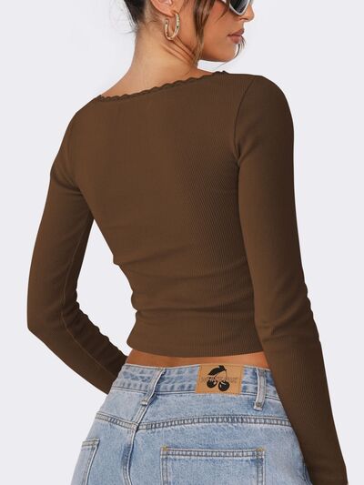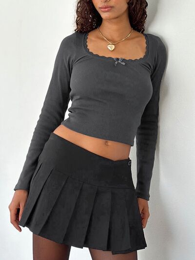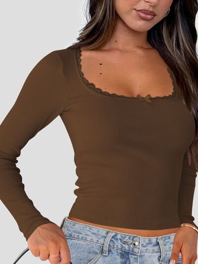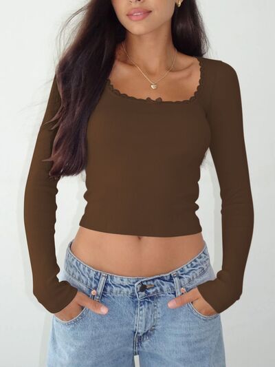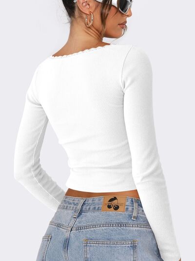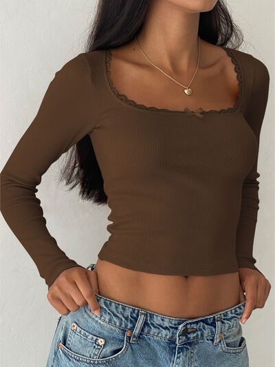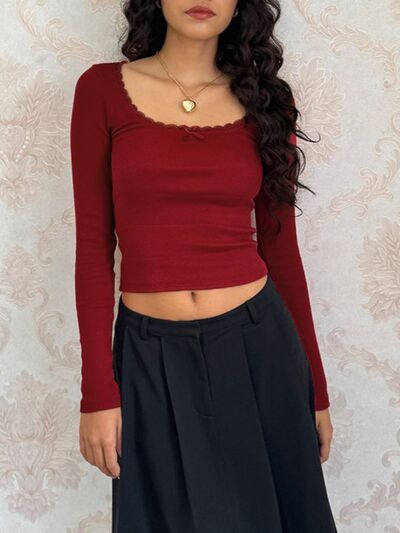 Lace Detail Long Sleeve Crop T-Shirt