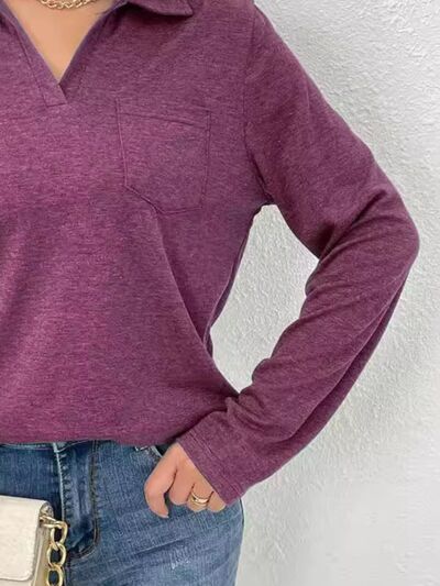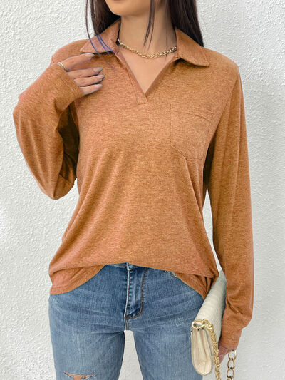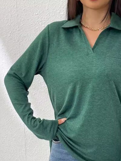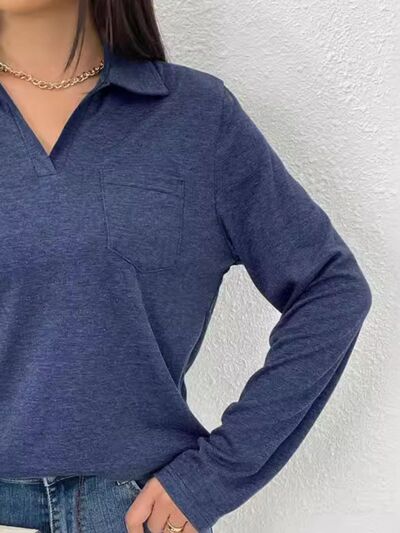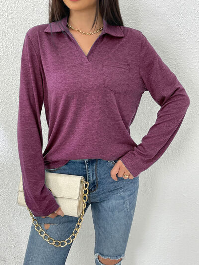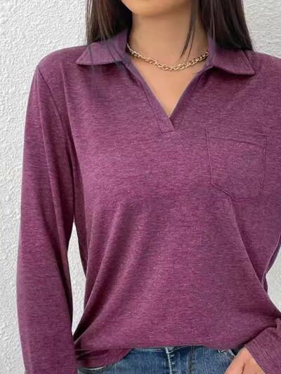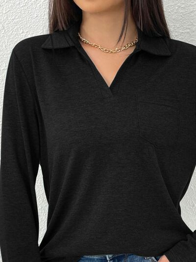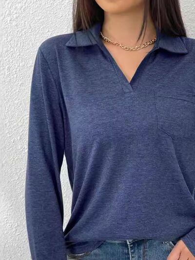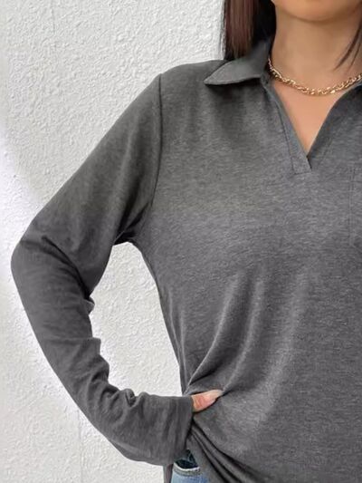 Collared Neck Long Sleeve T-Shirt