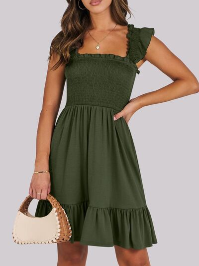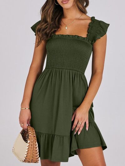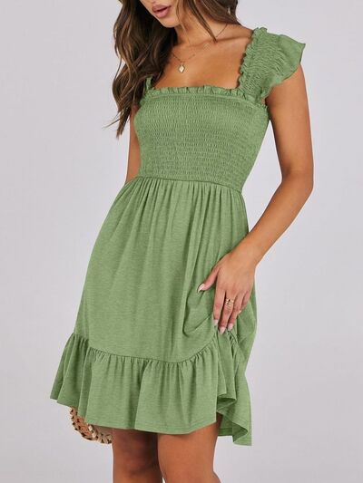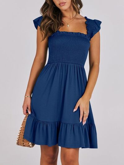 Smocked Ruffle Hem Mini Dress