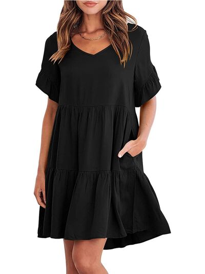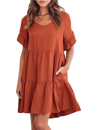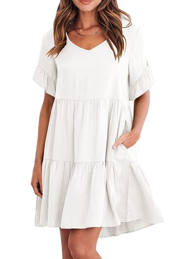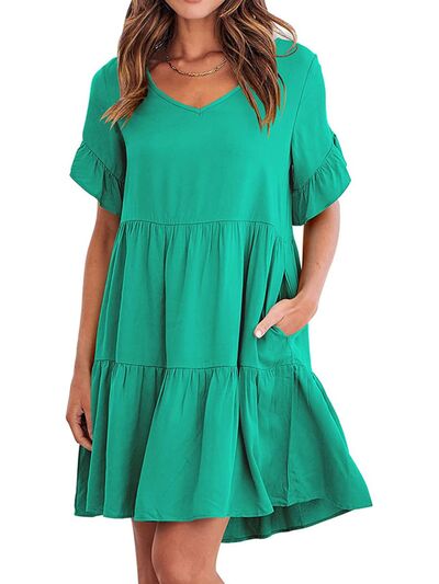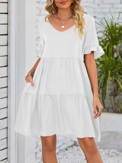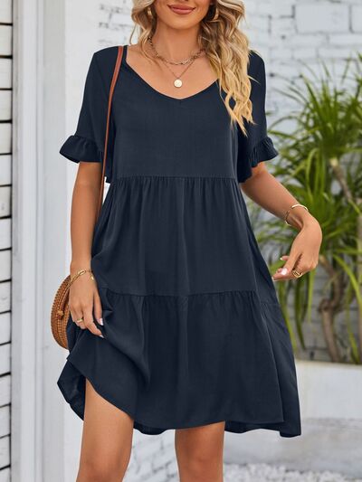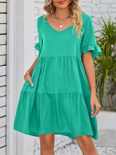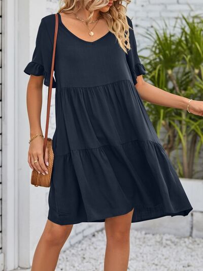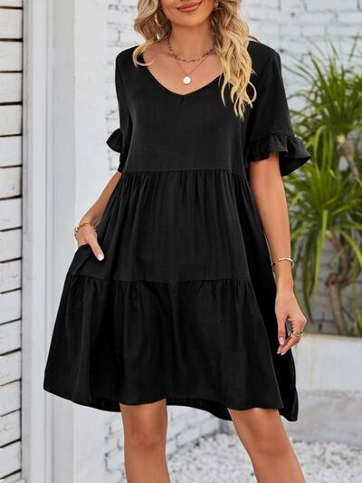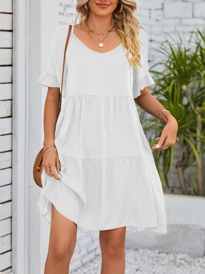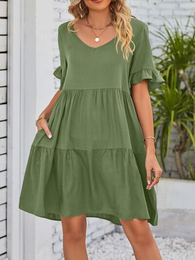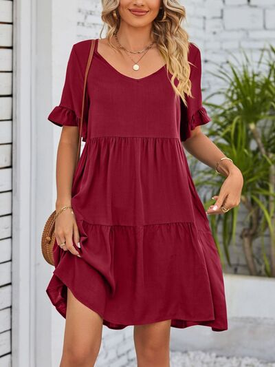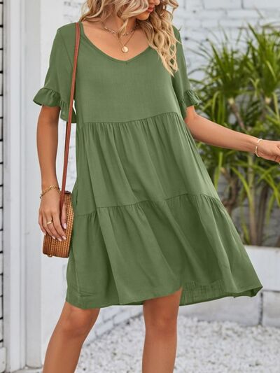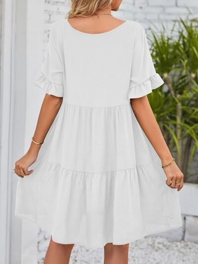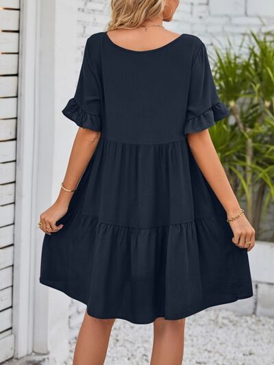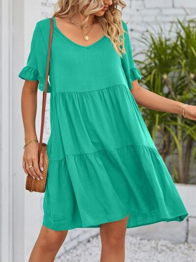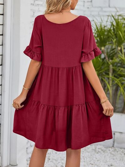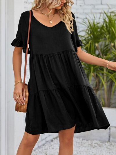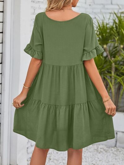 Ruffled Sleeve Tiered Mini Dress