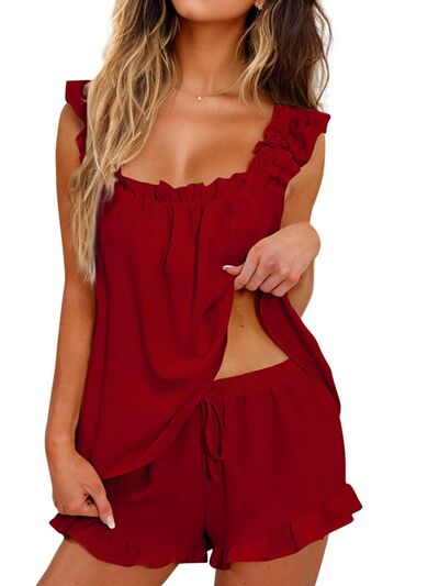Ruffle Trim Top and Shorts Set