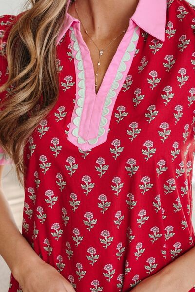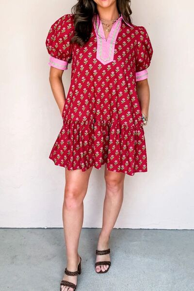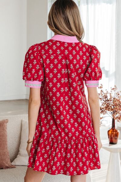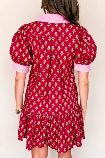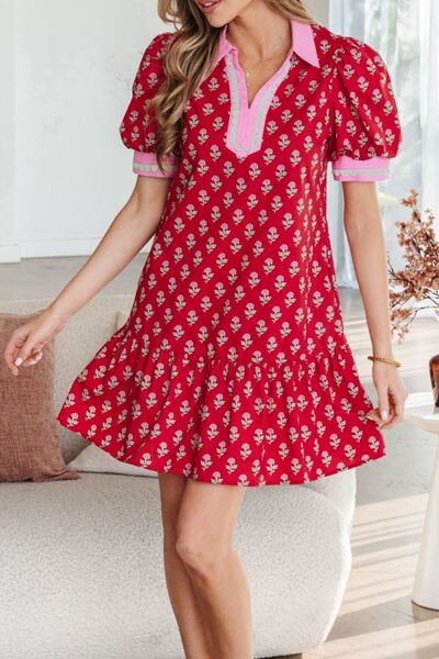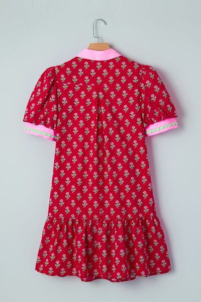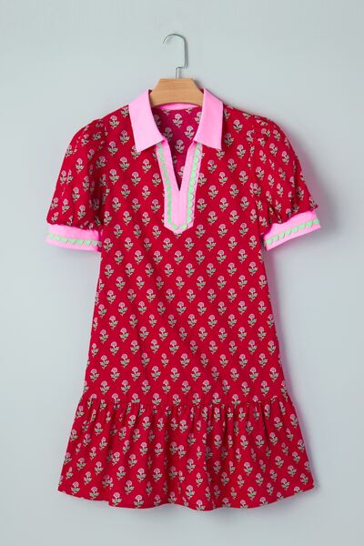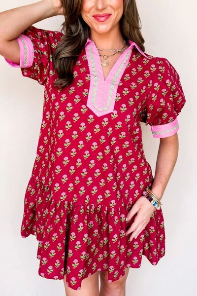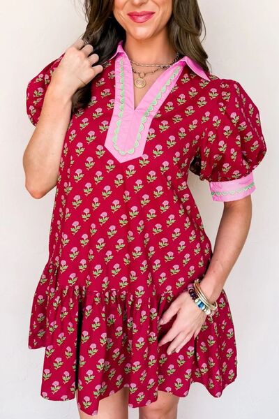 Floral Print Ruffle Hem Mini Dress