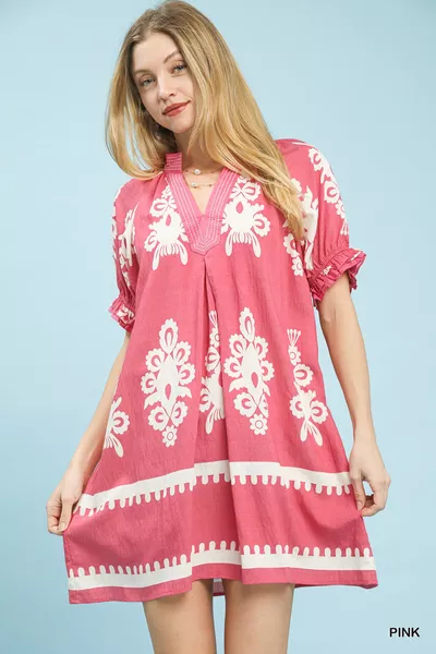 Umgee Two Tone Border Print Mini Dress