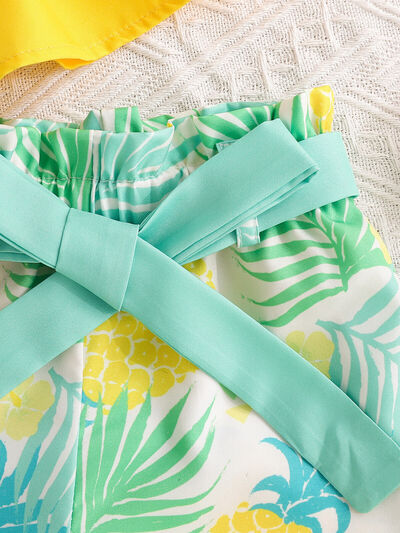 Children's Ruffle Trim Layered Cami Top & Pineapple Print Shorts Set