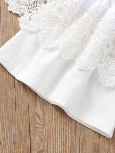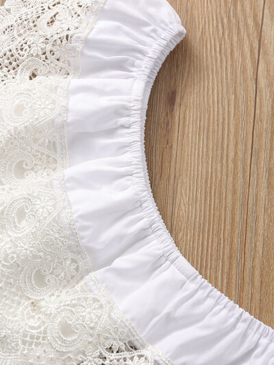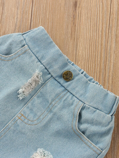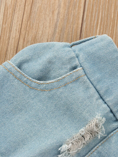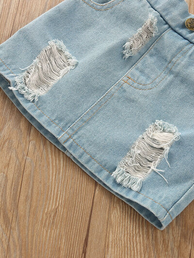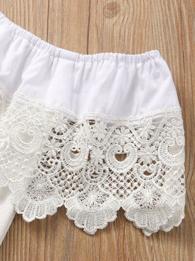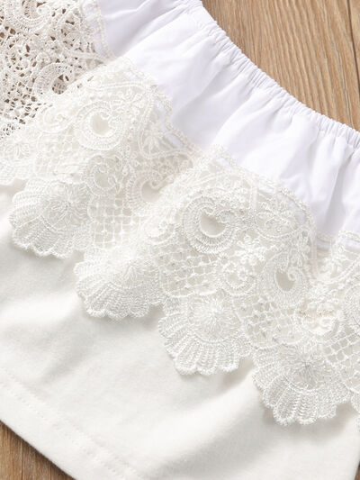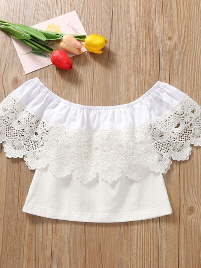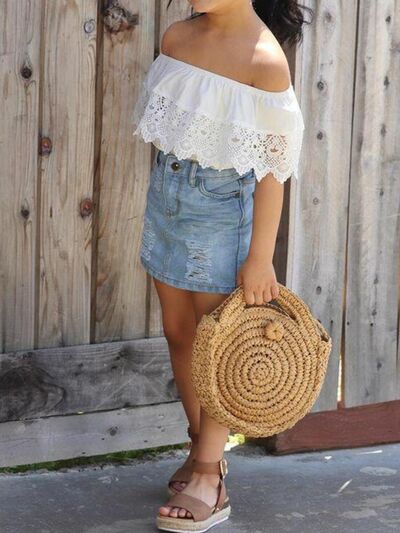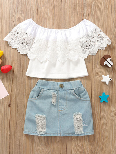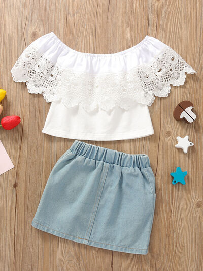 Children's Off-Shoulder Lace Top and Denim Skirt Set