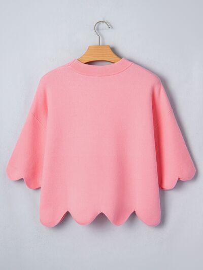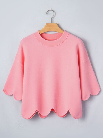 Scalloped Hem 3/4 Sleeve Sweater Top