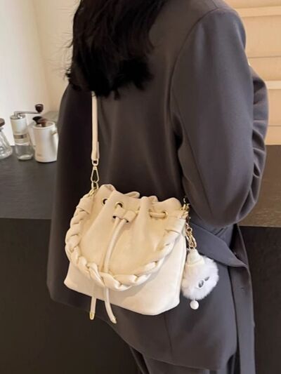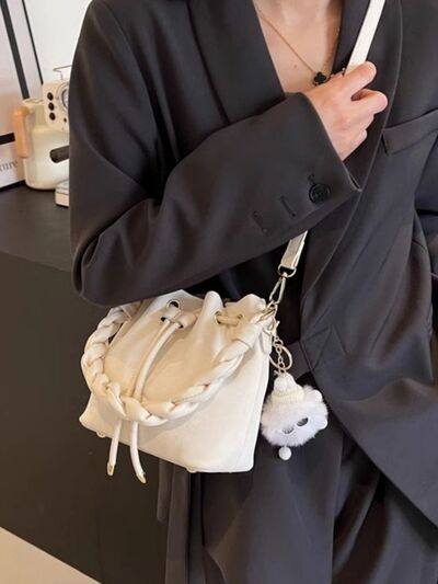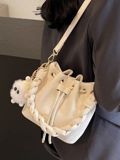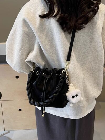 Chunky Chain Trim Drawstring Bucket Crossbody Bag