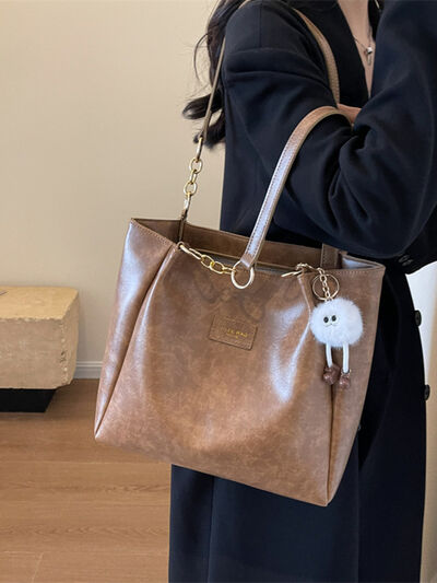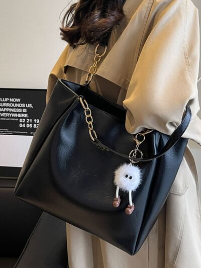 Chain Decor Leather Shoulder Bag
