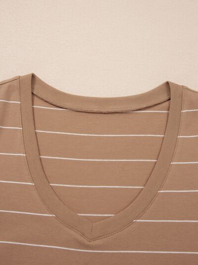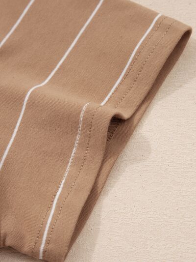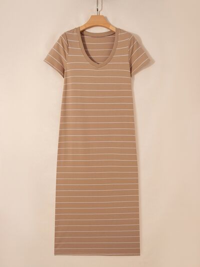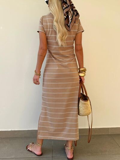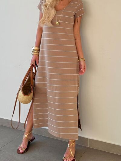 Stripe Short Sleeve Side Slit Maxi T Shirt Dress