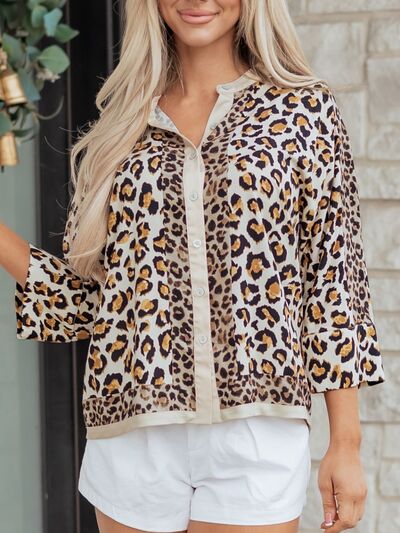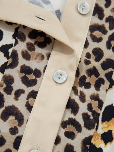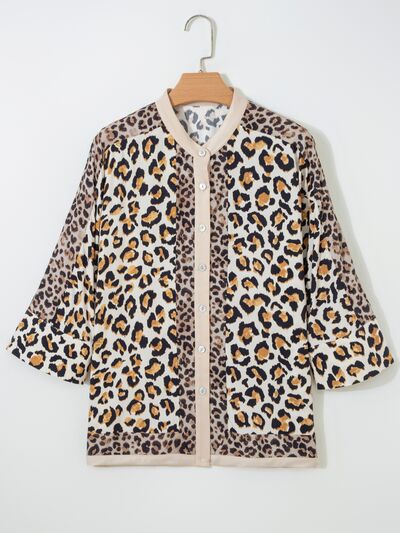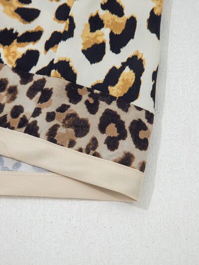 Mixed Leopard Patchwork 3/4 Sleeve Loose Shirt