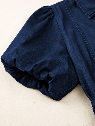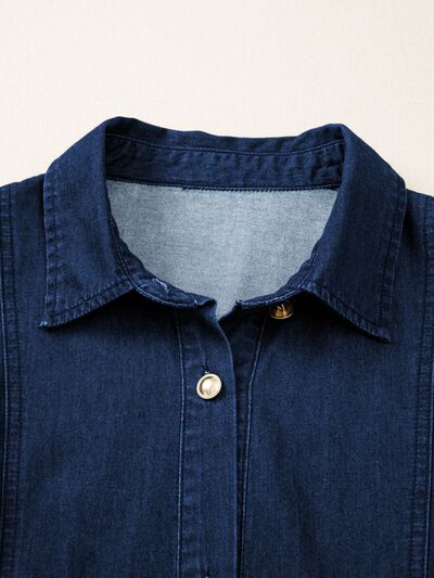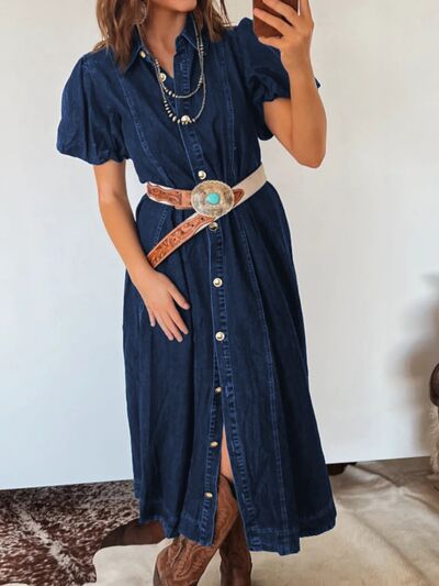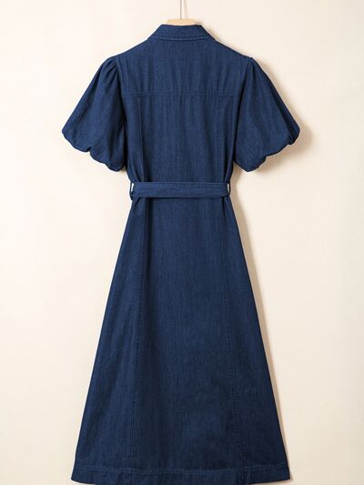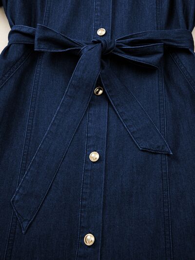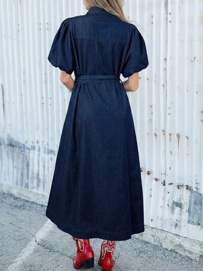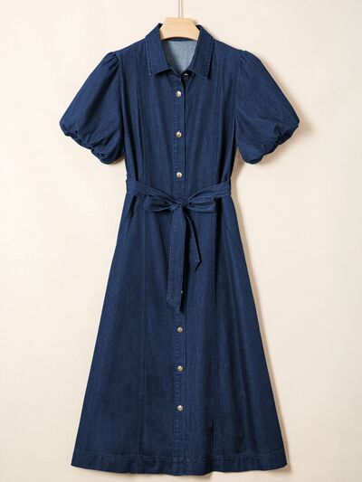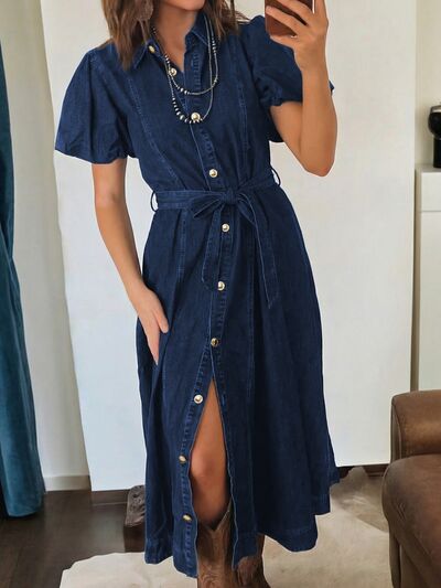 Belted Button-Down Midi Denim Dress