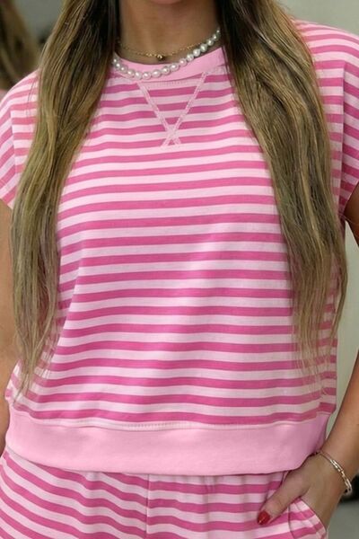 Round Neck Striped Top and Shorts Set