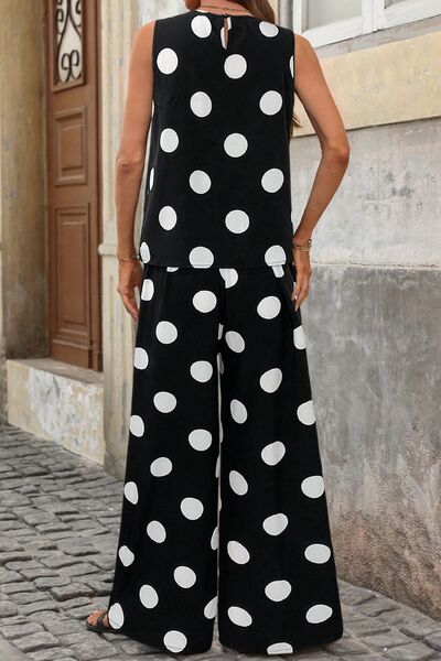 Sleeveless Polka Dot Top and Pants Set