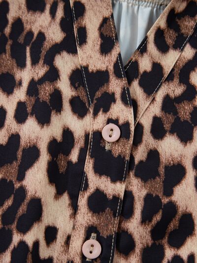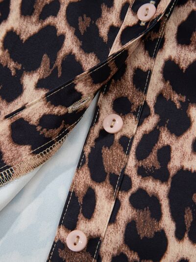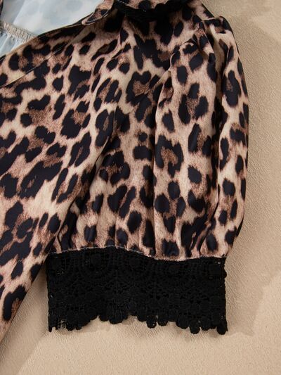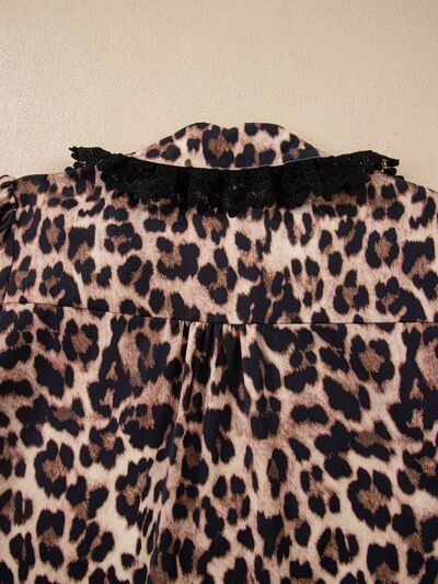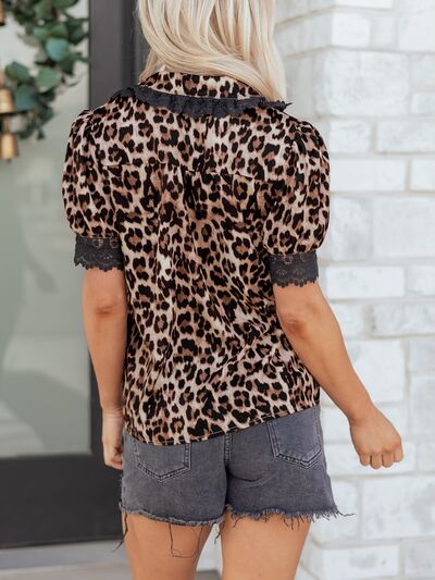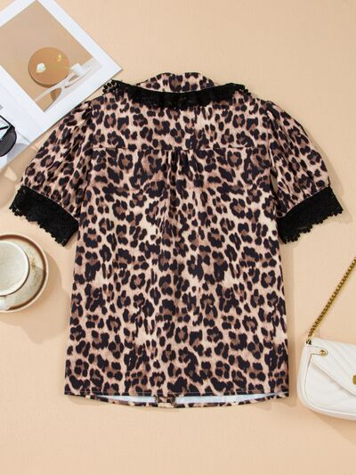 Leopard Print Lace Trim Short Sleeve Shirt