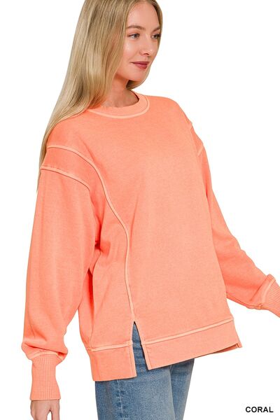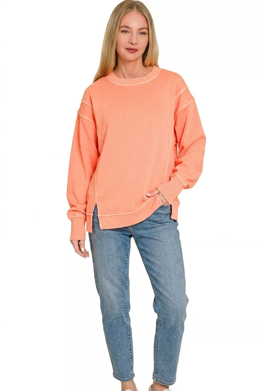 Zenana Pigment Dye Exposed-seam Fleece Sweatshirt