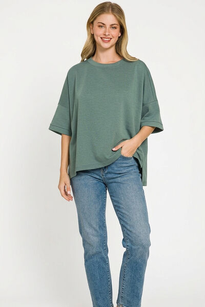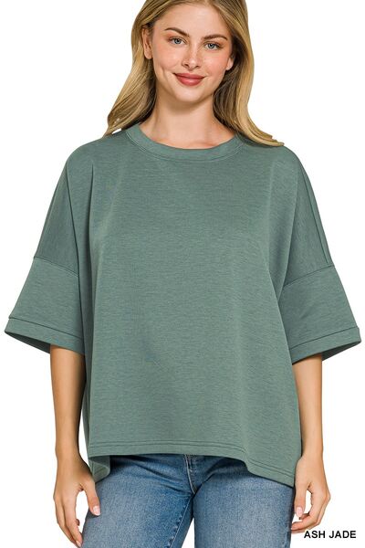 Zenana Full Size Scuba Round Neck Top With Side Slits Plus Size