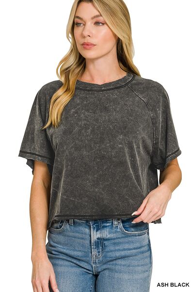 Zenana Acid Washed Round Neck Crop Tee