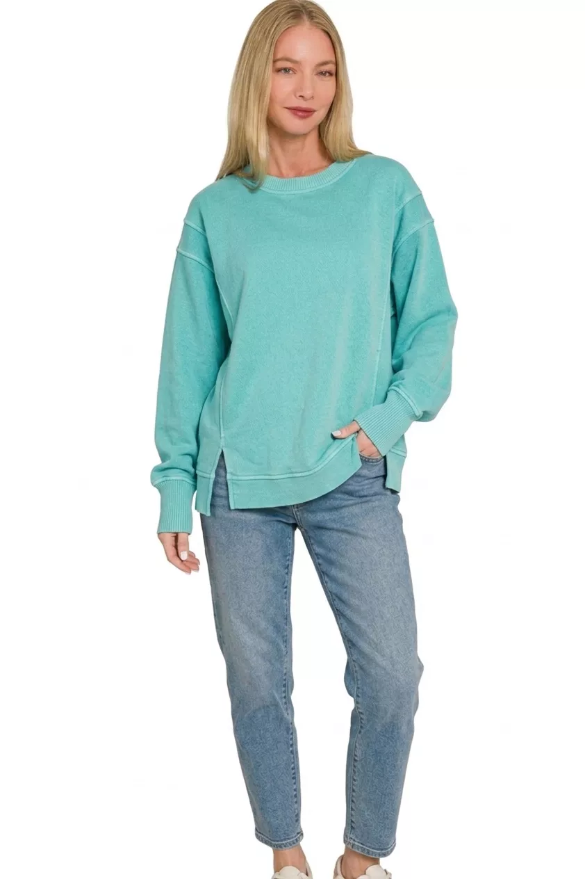 Zenana Pigment Dye Exposed-seam Fleece Sweatshirt