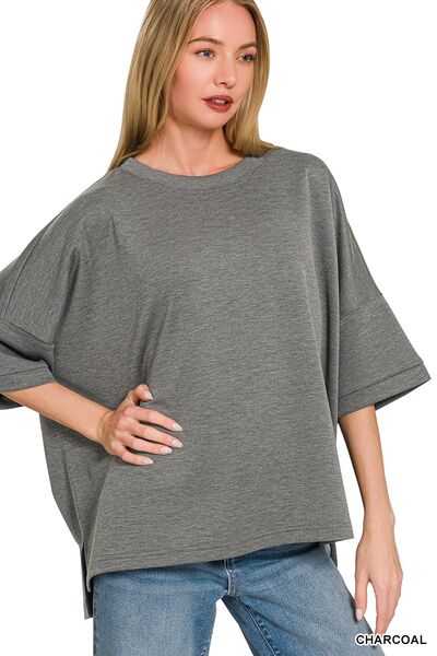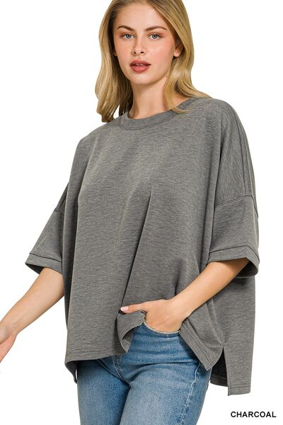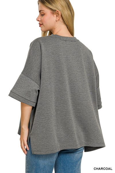 Zenana Full Size Scuba Round Neck Top With Side Slits Plus Size