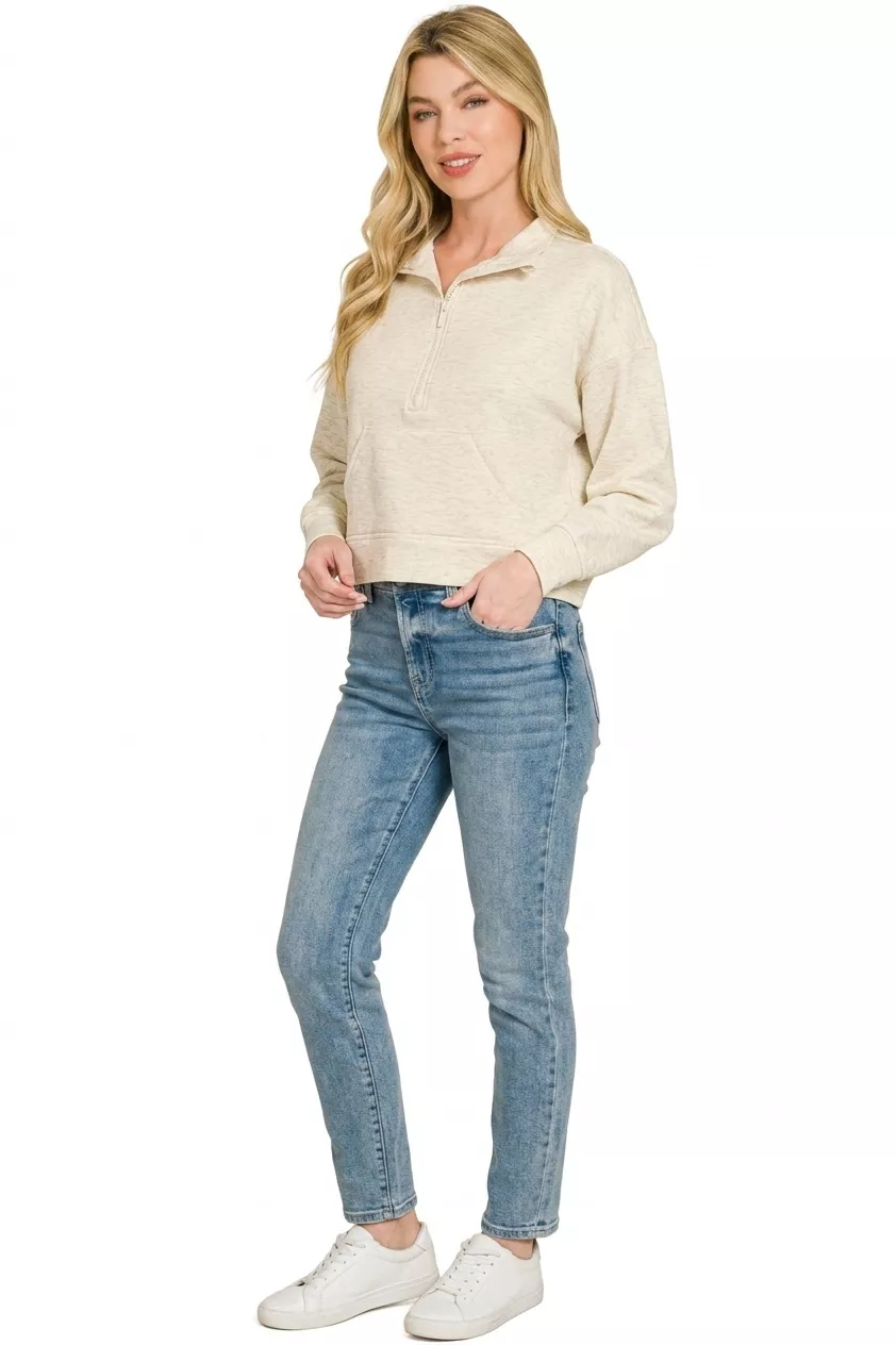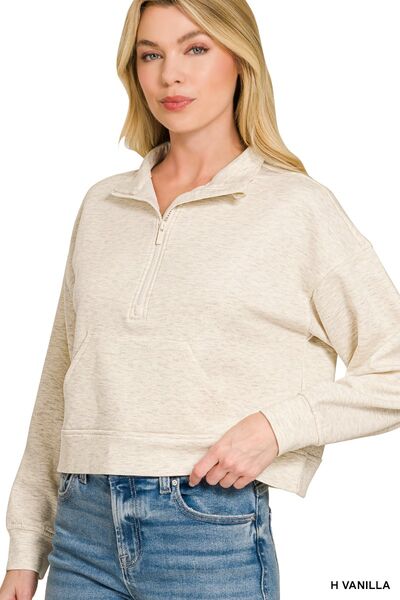 Zenana Scuba Half Zip Pullover With Kangaroo Pockets