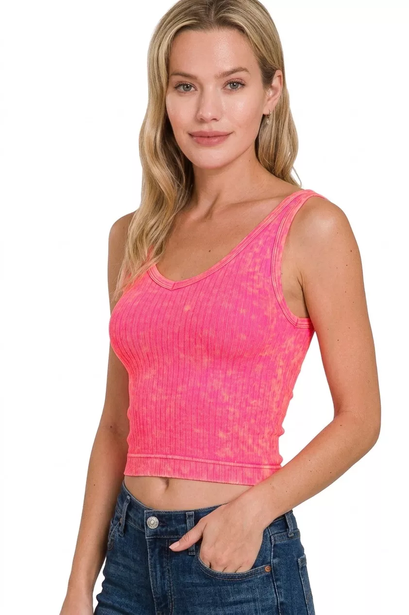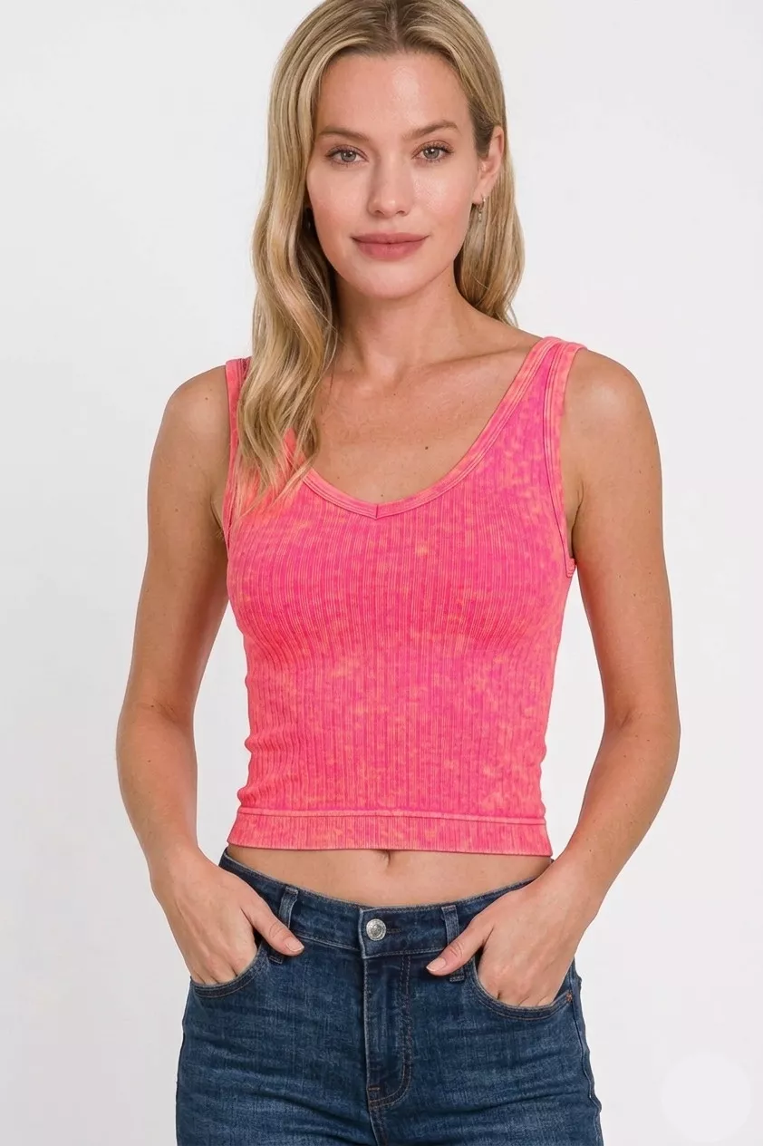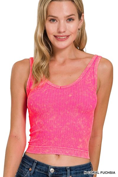 Zenana Washed Ribbed Seamless Cropped V-neck Tank Top