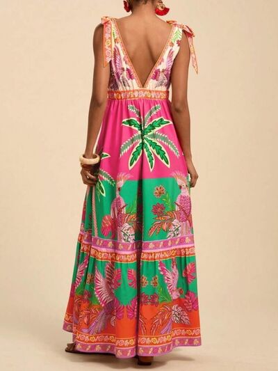 Tropical Print Tie-Shoulder Maxi Dress