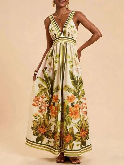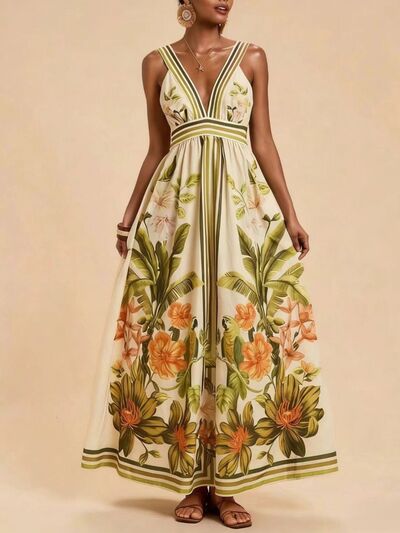 Tropical Print V-Neck Maxi Dress