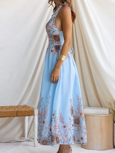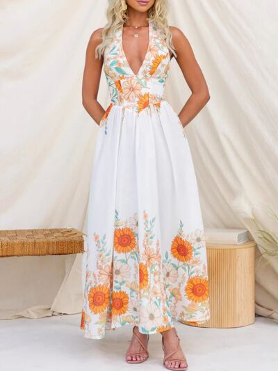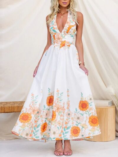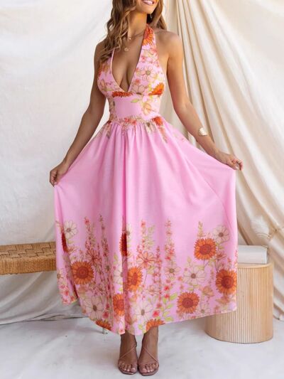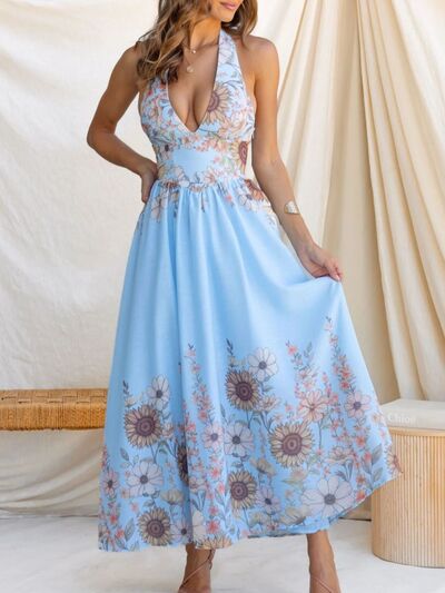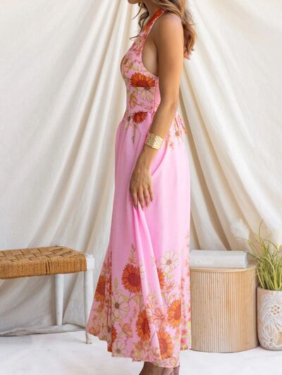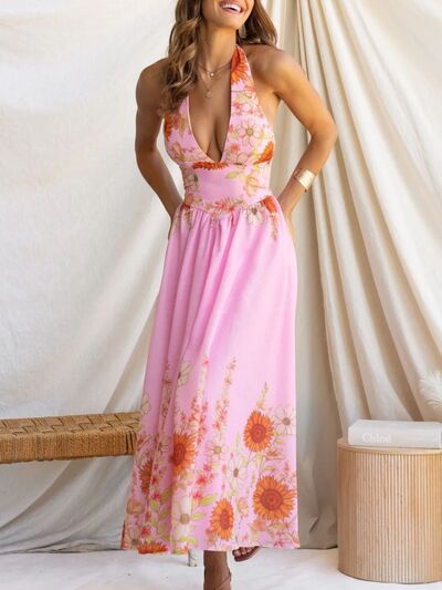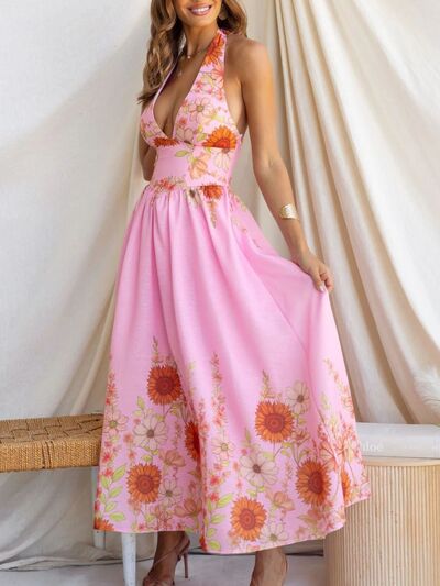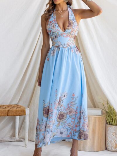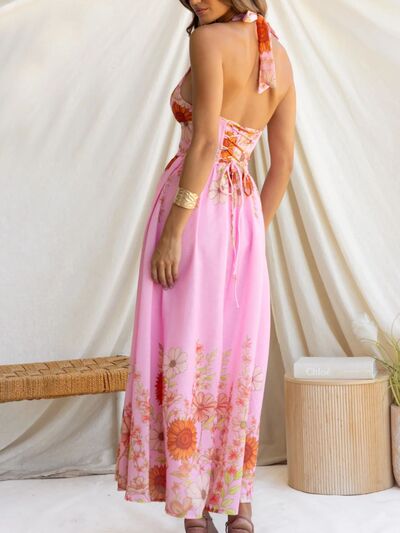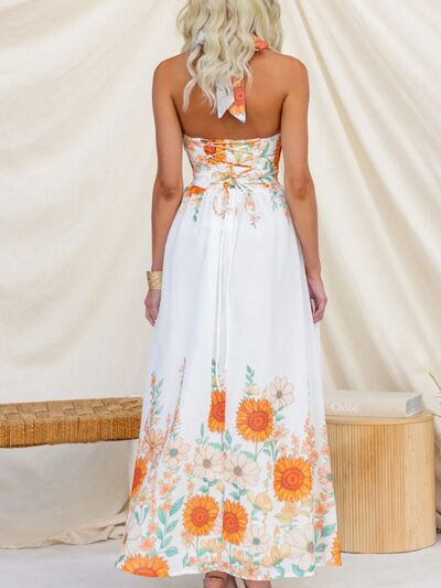 Floral Print Halter Neck Maxi Dress