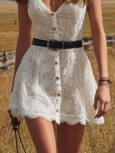 Lace Button Up Mini Dress