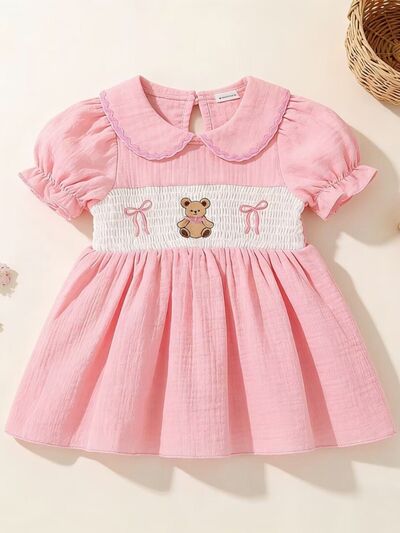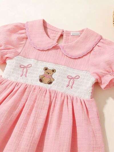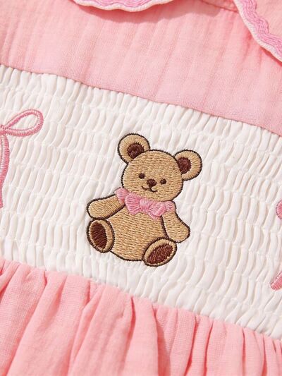 Children's Bear Embroidered Smocked Dress