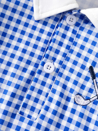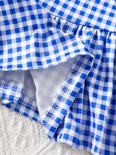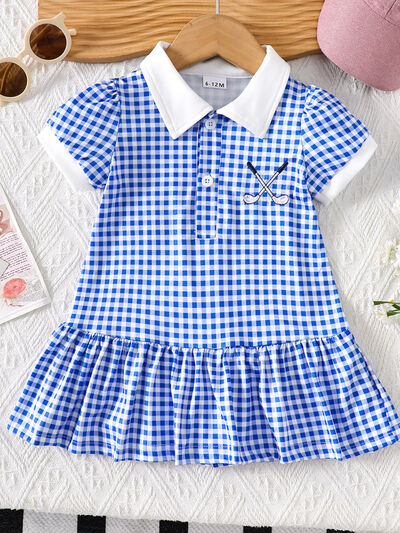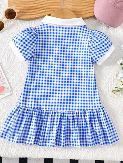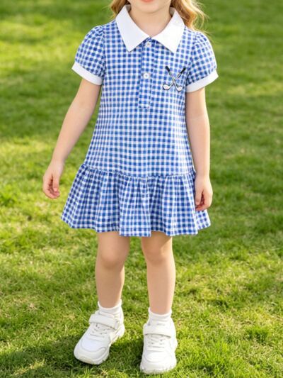 Children's Gingham Polo Collar Ruffle Hem Dress