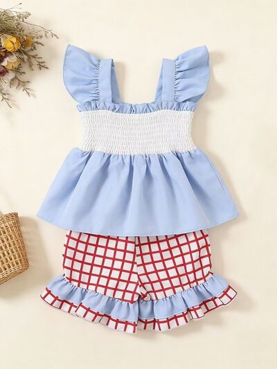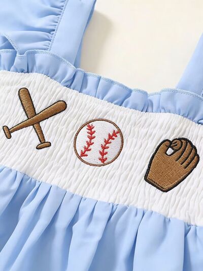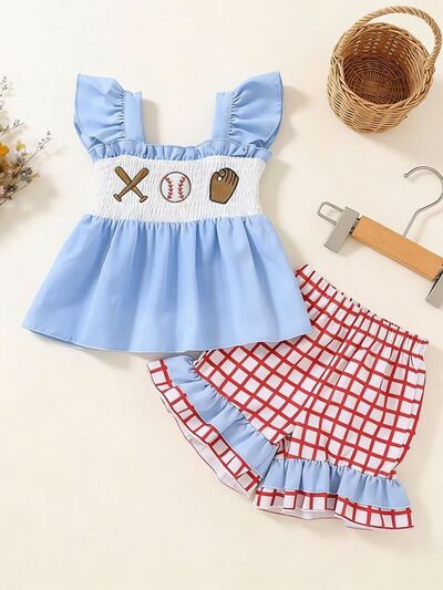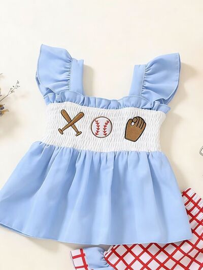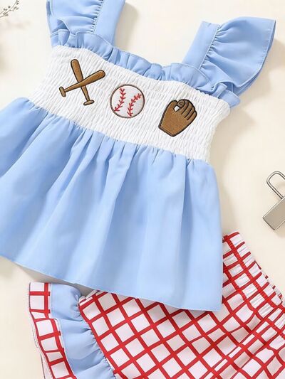 Children's Baseball Embroidered Ruffle Trim Top and Shorts Set