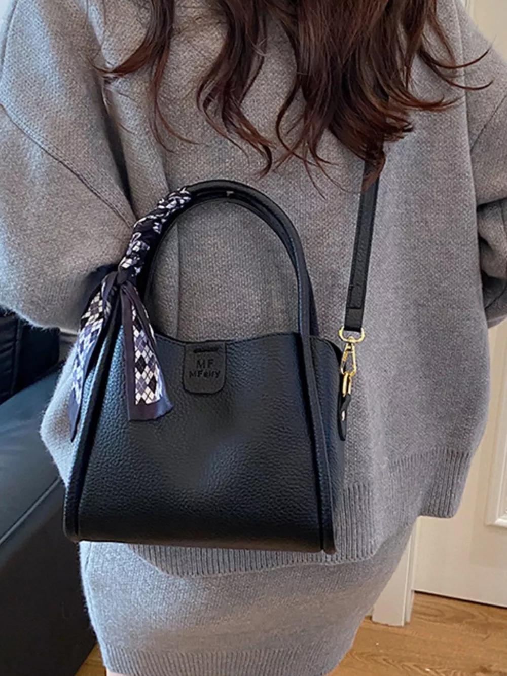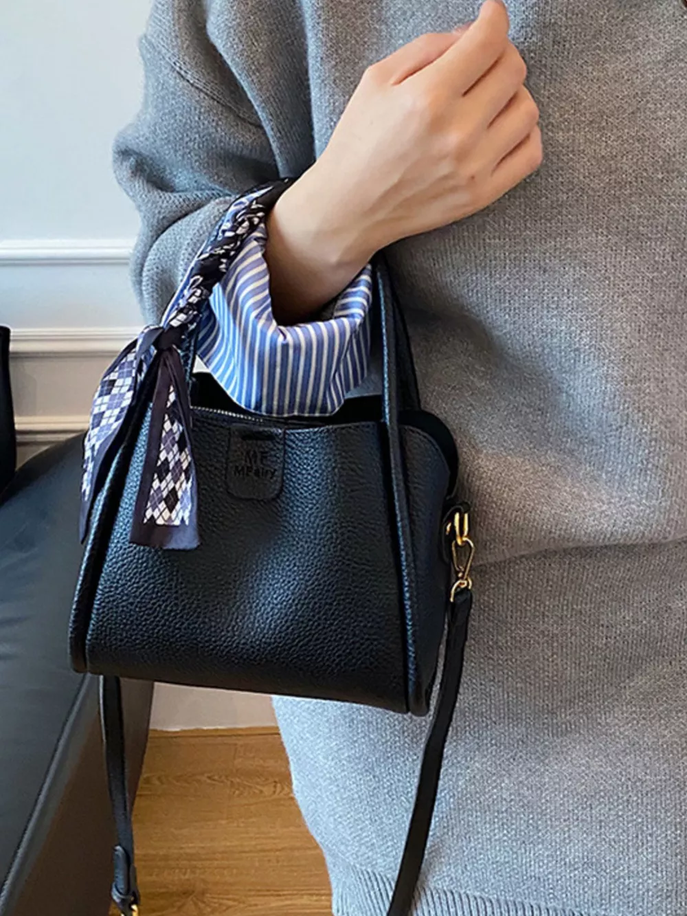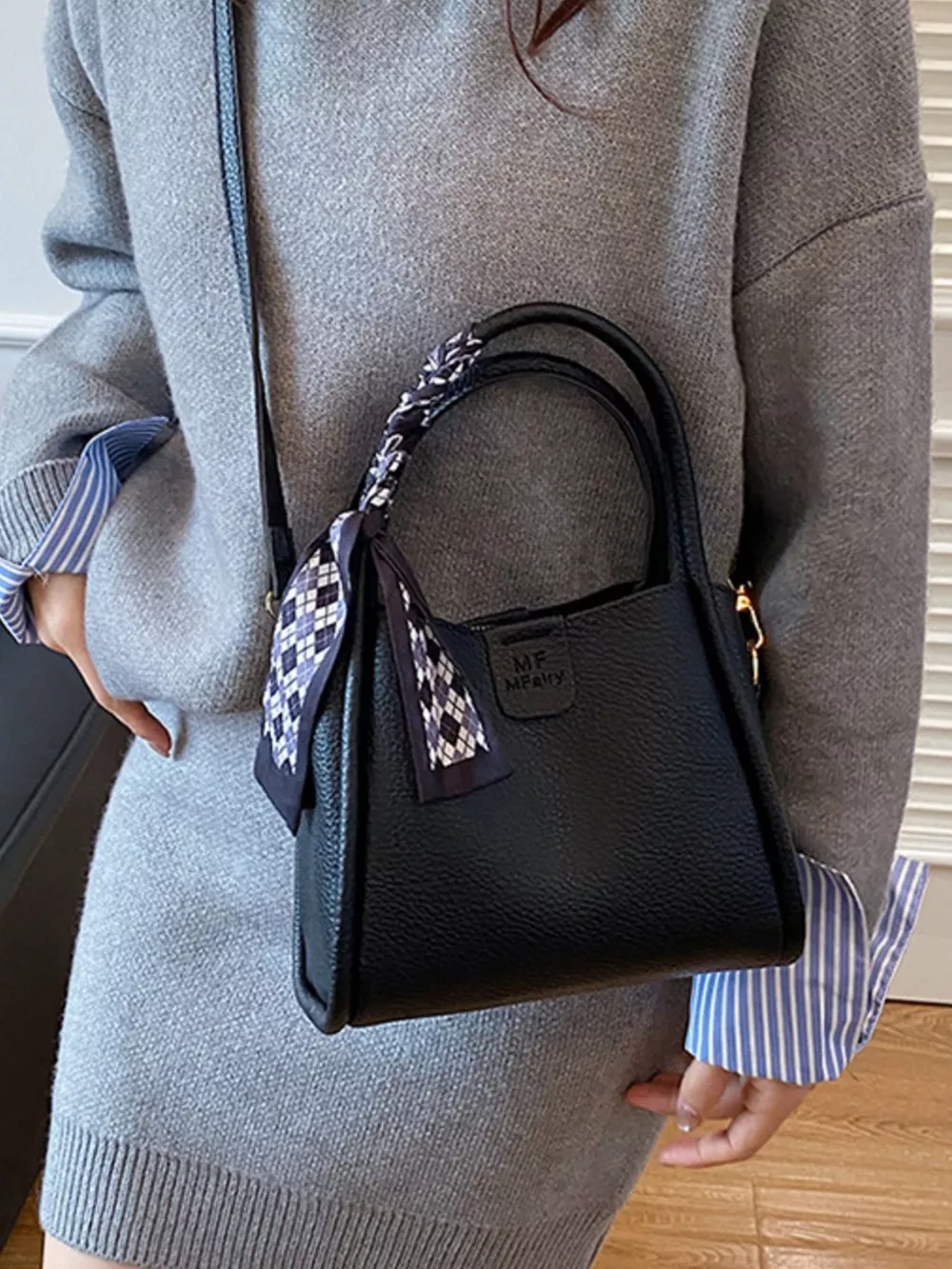 Leather Crossbody Bag with Scarf Accent