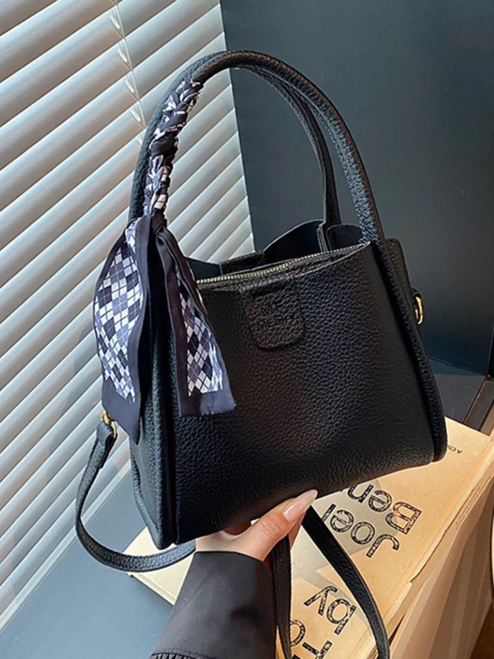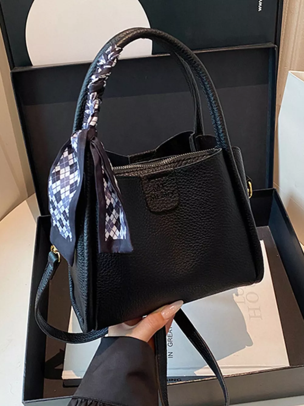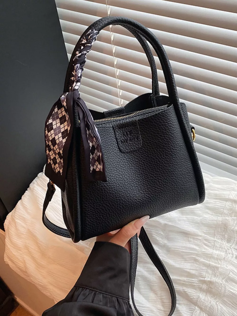 Leather Crossbody Bag with Scarf Accent