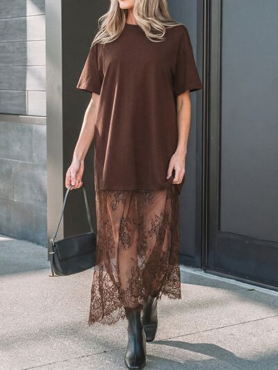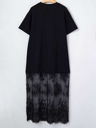 Floral Patchwork Short Sleeve T Shirt Loose Dress